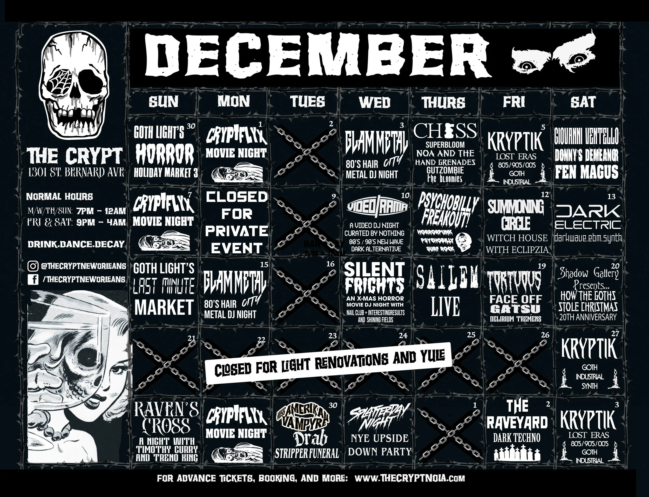 Join us in the Upside Down for New Orleans ONLY Stranger Things themed New Years Eve as Splatterday Night takes over The Crypt.