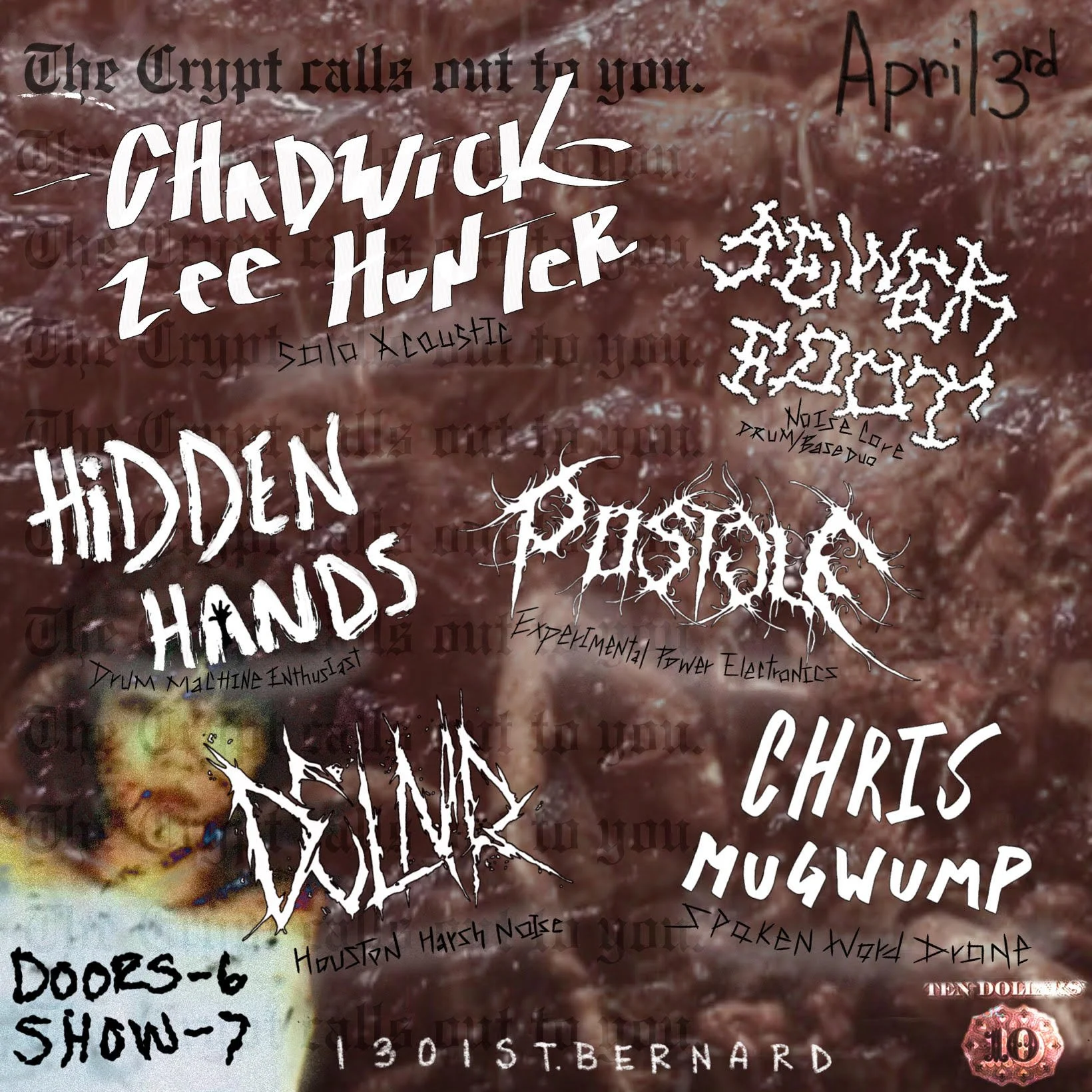 Chadwick Zee Hunter, Sewer Foot, Hidden Hands, Postule, DCLNR, Chris Mugwump