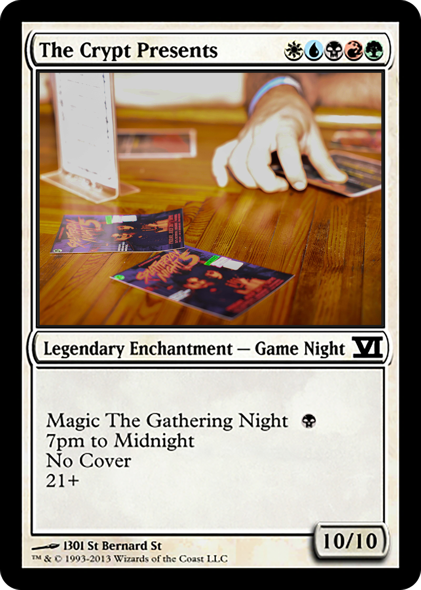 Magic the Gathering Night Sunday, April 19, 2026 7:00 PM 11:59 PM The Crypt 1301 Saint Bernard Avenue New Orleans, LA, 70116 United States (map) Google Calendar ICS